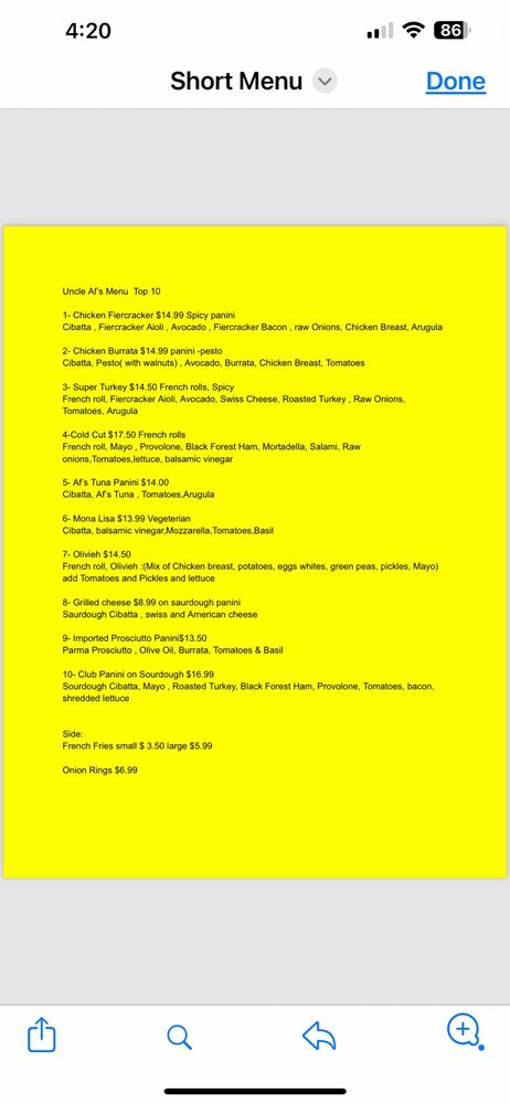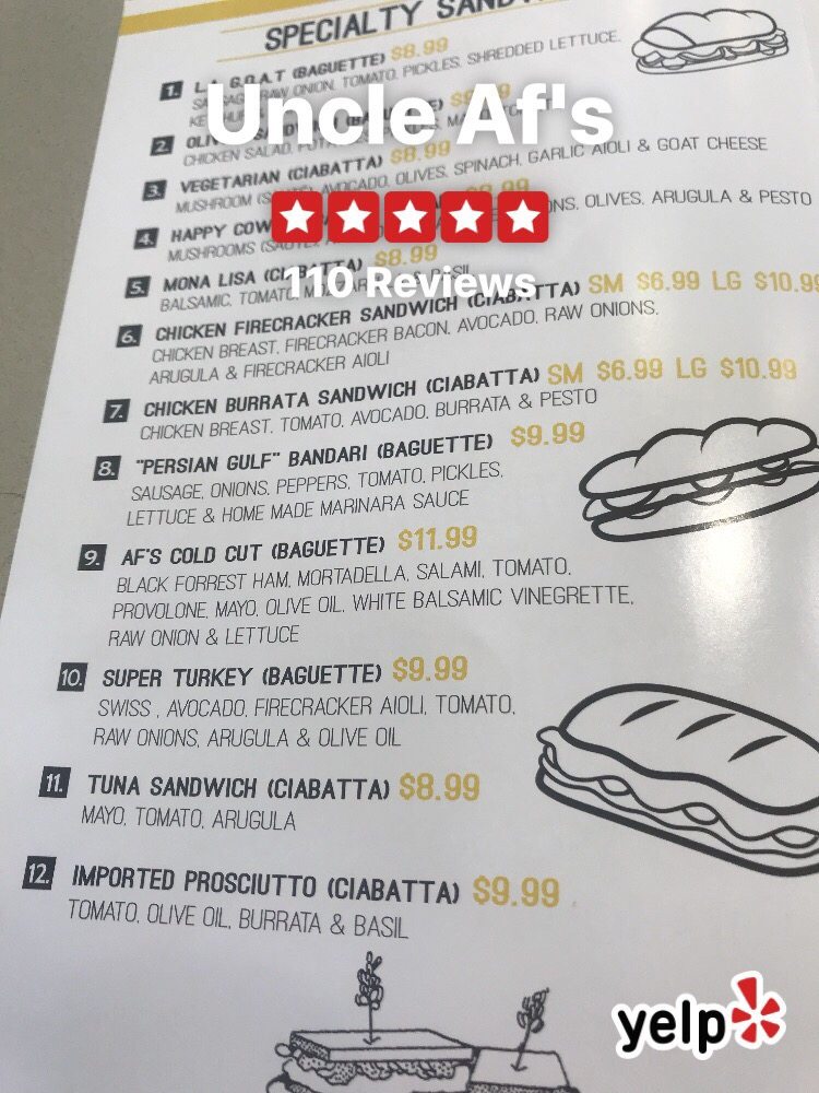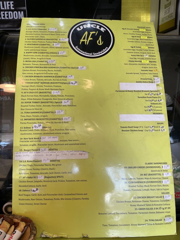 Uncle Af’s Menu (2025 Update)