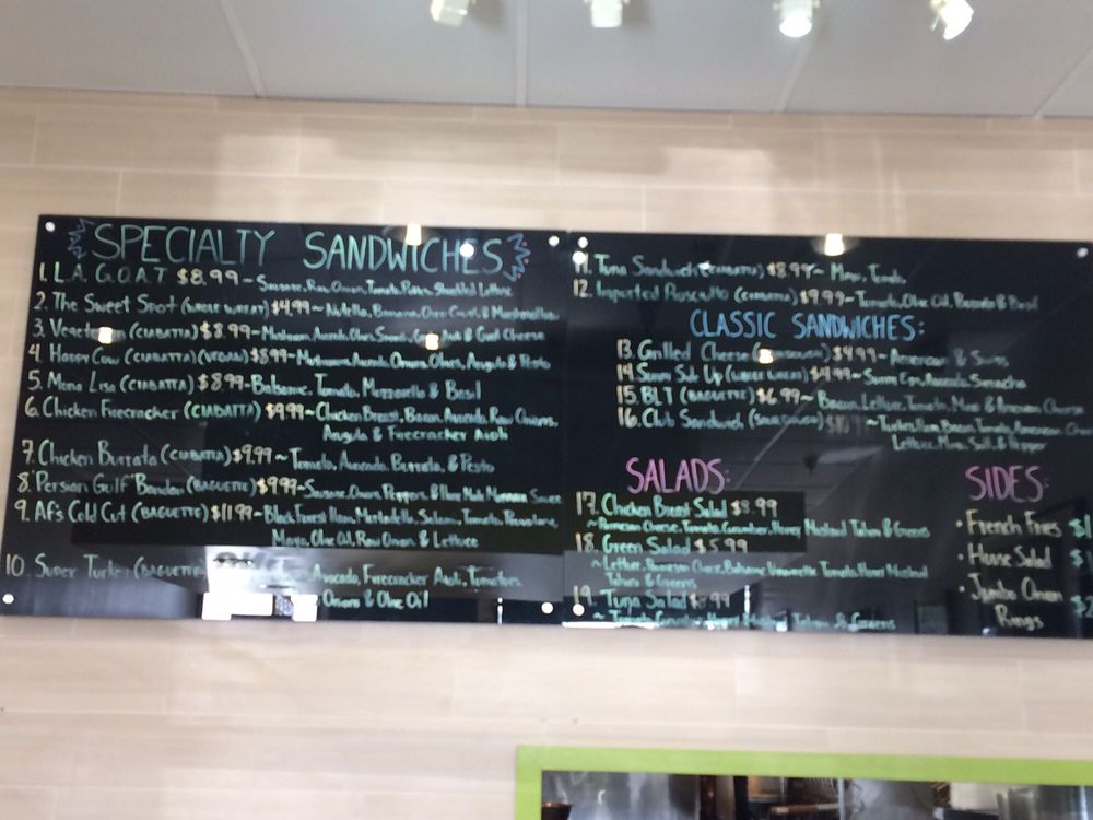 Served on ciabatta. Mushroom saute, avocado, olives, sauteed spinach, garlic aioli and goat cheese.