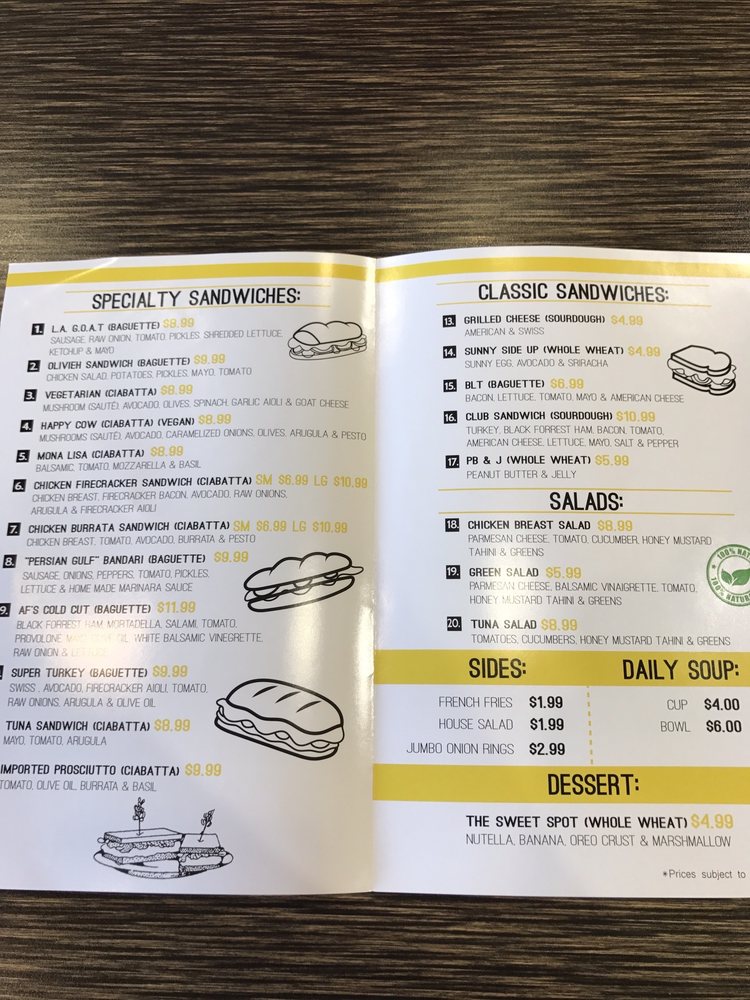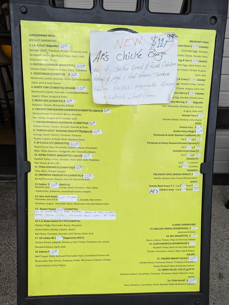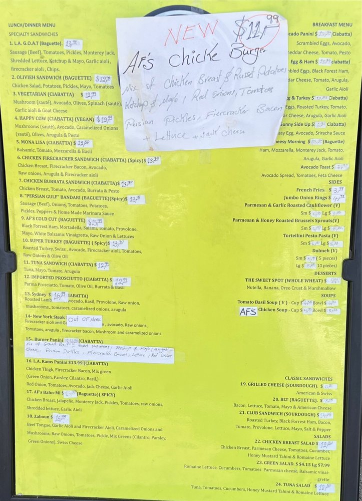 Uncle Af's is a unique restaurant that specializes in salads, breakfast & brunch, and sandwiches. Located in Agoura Hills, CA, this establishment offers a wide range of beverages, including brewed ice tea, sodas, and juices. Their menu features delicious salads like the Chicken Breast Salad and Tuna Salad, as well as classic sandwiches such as the Grilled Cheese and Club Sandwich. Customers rave about the flavorful dishes, friendly staff, and cozy atmosphere. The owner, known for his sandwich-making skills, personally recommends the Chicken Firecracker sandwich—a perfect blend of spice and flavor. With options for takeout, delivery, and catering, Uncle Af's is a must-visit spot for a satisfying meal experience.